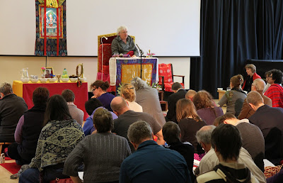 Lama Jampa Thaye teaches in Harrogate 12th March 2013 On Saturday, 9 March in Harrogate Lama Jampa Thaye taught the first part of ‘One Hundred Pieces of Advice to the People of Tingri’ by Dampa Sanjye, an important Tibetan master in the “Zhi-je” and “Chod” lineages. In the afternoon, Lama Jampa gave refuge to new members of the Yorkshire sangha prior to bestowing the long-life initiation of Namgyalma from the Narthang Gyatsa lineage of Atisha. During the day the coordinator of Kagyu Dechen Dzong, Howard Quinn, launched the ‘New Centre for Yorkshire’ project and appeal. He outlined the intentions of the Yorkshire sangha to move to a more accessible and appropriate location in Harrogate. At the conclusion of the initiation, Lama Jampa referred to the momentous recent visit of His Holiness Trinley Thaye Dorje to Yorkshire and commended this project to the sangha. Lama Jampa will teach the second part of ‘One Hundred Pieces of Advice to the People of Tingri’ on 7 September 2013 in Harrogate.