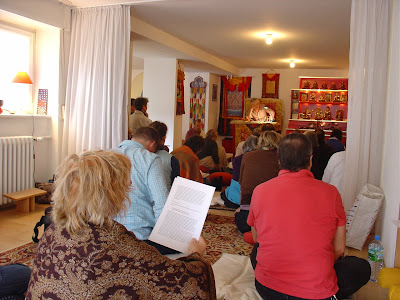 Both events were well attended, by regular sangha members as well as by visitors from within Stuttgart and further afield. Lama Jampa expressed his pleasure at being able to come to South Germany to teach, and also thanked everyone involved who continue to make it possible for him to do so. Lama Jampa will come to Stuttgart again in May and October.