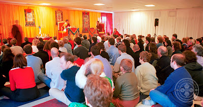 The first part of the visit was hosted by Sakya Thinley Rinchen Ling. His Holiness began the sequence of teachings by teaching Chogyal Phakpa's Letter of Instructions to Kublai Khan, a wonderfully lucid summary of all the paths of the dharma. Over the next few days His Holiness gave the initiation of Chakrasamvara from the lineage of Krishnacharya. This major empowerment was followed by that of Vajrayogini Narokhachoma.