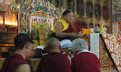 Lama Jampa and His Holiness Karmapa discussed the status of Buddhism in the West and East; His Holiness Karmapa observed that we need more shedras, as well as drupdas, as we need to respect the full intellectual depth of the dharma.
