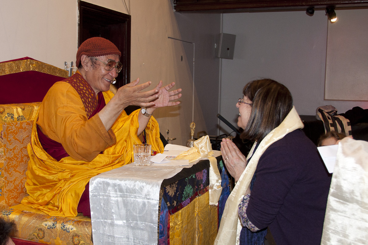 On the weekend of 5 to 6 November Karma Thinley Rinpoche stopped over in London on his annual journey from Nepal to Canada having spent several months this year in Nepal and also visiting Tibet with his attendant, Kunga, during this time. Rinpoche was hosted in London by Lama Jampa Thaye and Dechen Dolma.