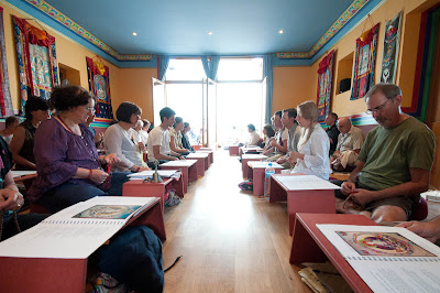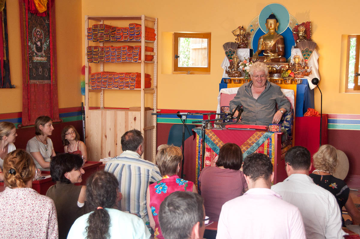 Over 80 people gathered daily to hear this seminal text which clarifies the essential Buddhist teachings, tracing them back to their original sources. The first part of the teaching concluded on 24th August, and Lama Jampa will continue to teach this text next year.