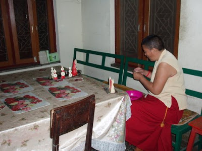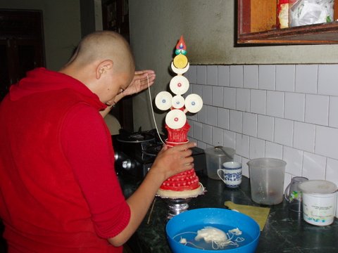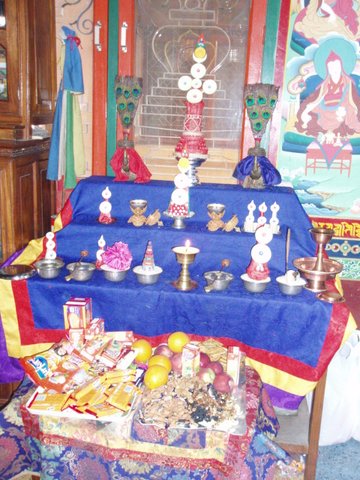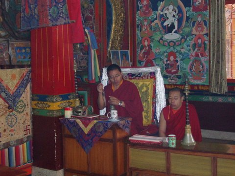 Today, 21 October, a 3-day long-life ritual has begun in the temple of Tegchen Legshey Ling , which is Karma Thinley Rinpoche's monastery in Nepal. It is being conducted by four senior monks, led by the Sakya tulku Khedrup Gyamtso. One of the nuns is also in attendance acting as Cho-pon, shrine master.