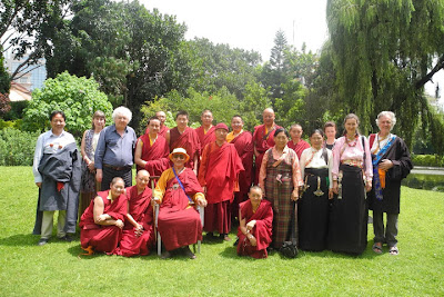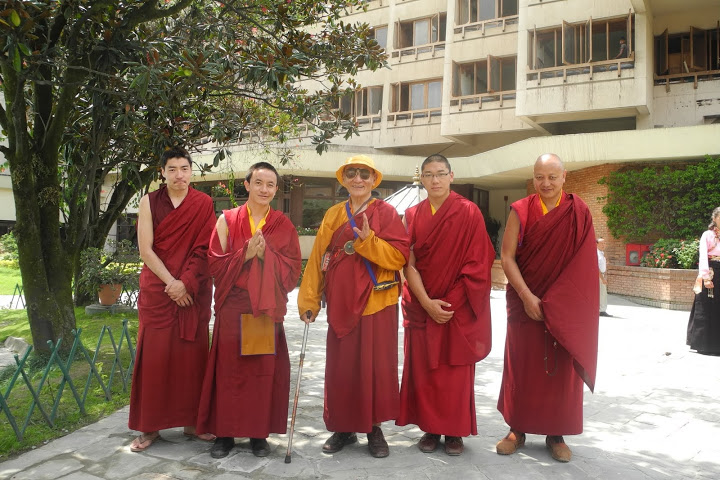 On the third day of their visit, Lama Jampa Thaye and Dechen Drolma hosted a reception for Karma Thinley Rinpoche, Tulku Konchok Tenzin, Tulku Khedrup Gyamtso, Zopa Tulku, Tsepak Dorje Tulku, Venerable Lama Assi, Lama Kalsang Gyamtso, Lama Thubten Gyamtso, and all the ordained and lay sangha members of Tegchen Legshey Ling, to celebrate the 25thanniversary of the monastery. The reception was held at the beautiful “Yak & Yeti” Hotel in Kathmandu, famous for its beautiful gardens and sumptuous buffet lunches!